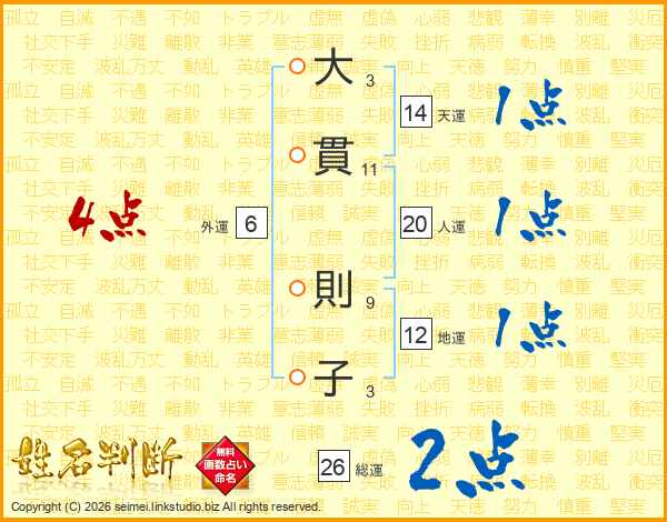 大貫則子さんの総運は26画の2点!