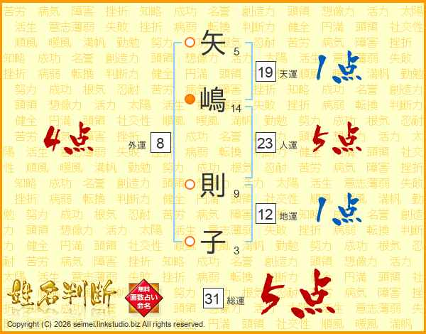 矢(5画)嶋(14画) 則(9画)子(3画)