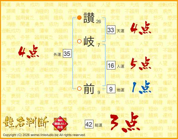 讃岐前さんの天運は33画の4点!