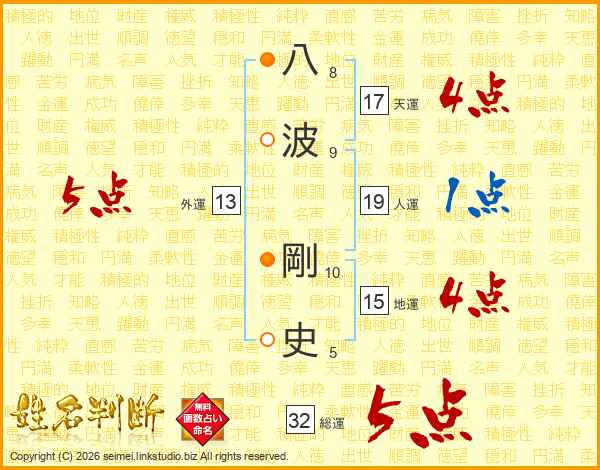 八波剛史さんの総運は32画の5点!
