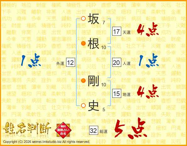 坂根剛史さんの総運は32画の5点!