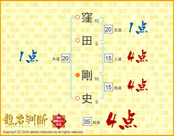 窪田剛史さんの総運は35画の4点!