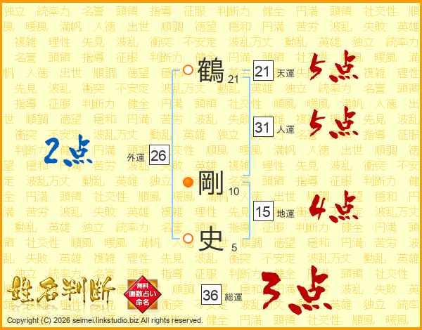 鶴剛史さんの天運は21画の5点!