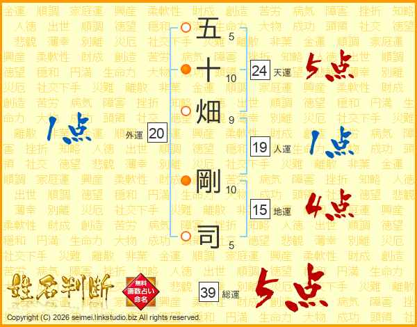 五十畑剛司さんの総運は39画の5点!