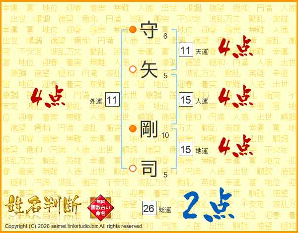 守矢剛司さんの総運は26画の2点!