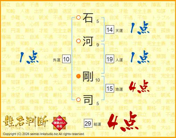 石(5画)河(9画) 剛(10画)司(5画)