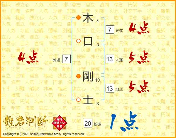 木(4画)口(3画) 剛(10画)士(3画)