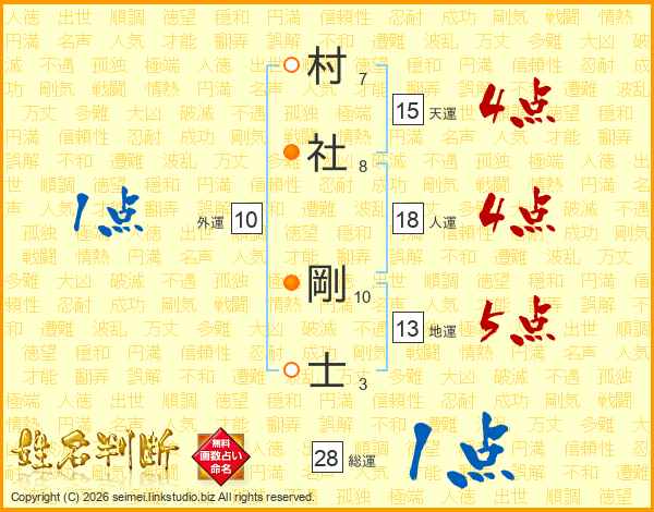 村社剛士さんの総運は28画の1点!