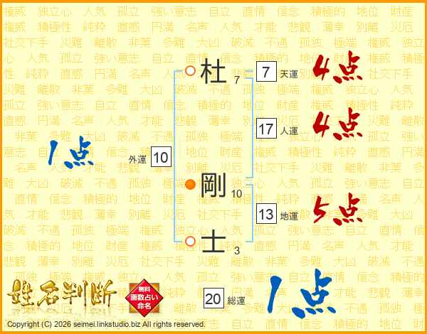 杜剛士さんの天運は7画の4点!