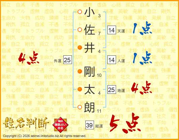 小佐井剛太朗さんの総運は39画の5点!