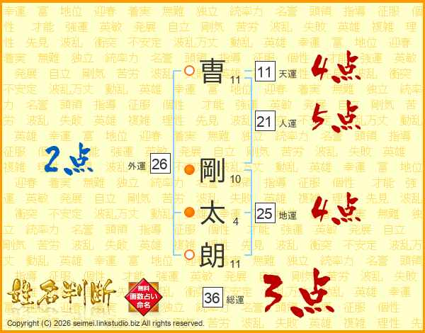 曺剛太朗さんの天運は11画の4点!