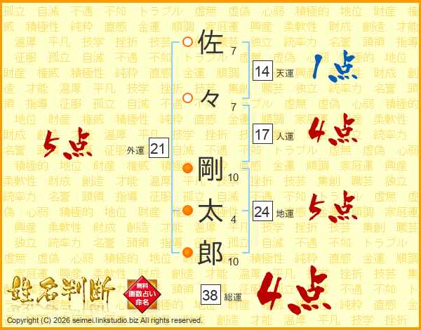 佐々剛太郎さんの総運は38画の4点!