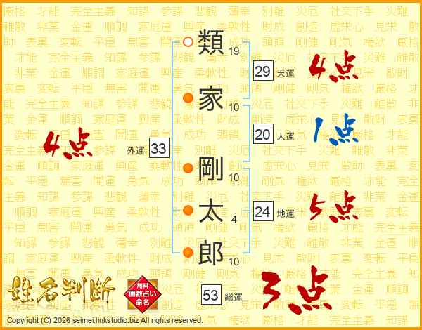 類家剛太郎さんの天運は29画の4点!
