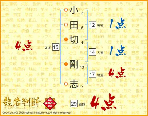 小(3画)田(5画)切(4画) 剛(10画)志(7画)