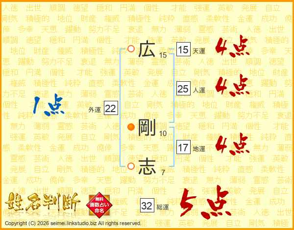 広(15画) 剛(10画)志(7画)