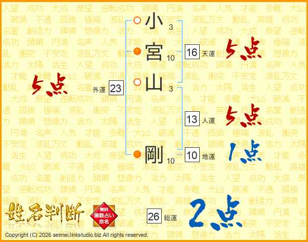 小宮山剛さんの総運は26画の2点!