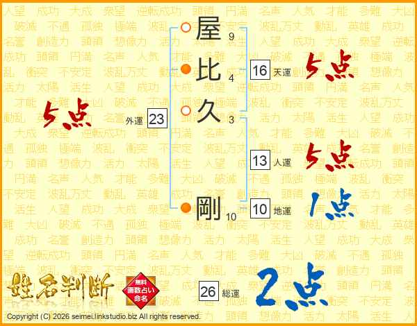 屋比久剛さんの総運は26画の2点!