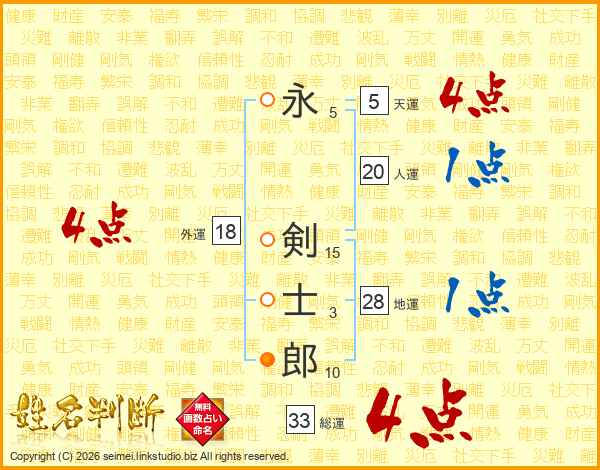 永剣士郎さんの総運は33画の4点!