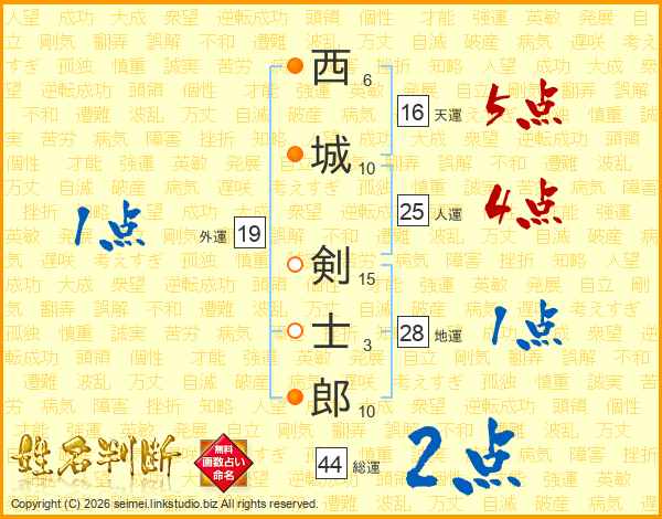 西城剣士郎さんの総運は44画の2点!