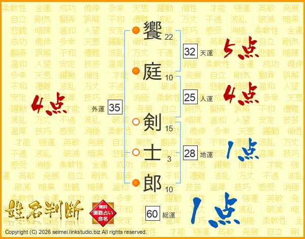饗庭剣士郎さんの人運は25画の4点!
