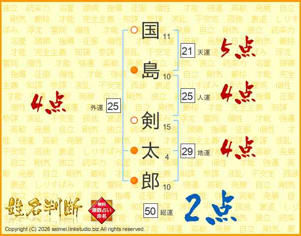 国島剣太郎さんの天運は21画の5点!