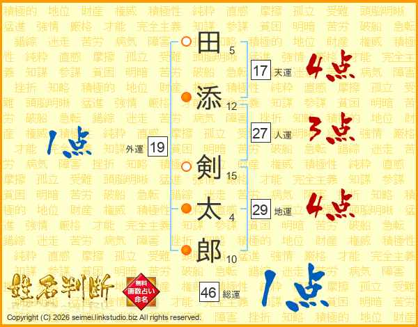 田添剣太郎さんの天運は17画の4点!