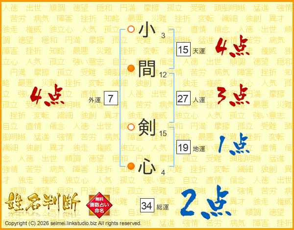 小間剣心さんの天運は15画の4点!