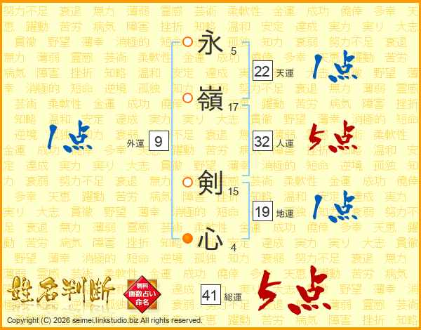 永嶺剣心さんの総運は41画の5点!