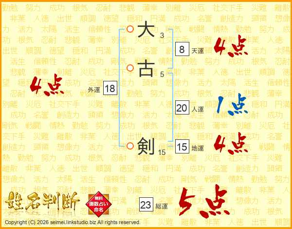 大古剣さんの総運は23画の5点!