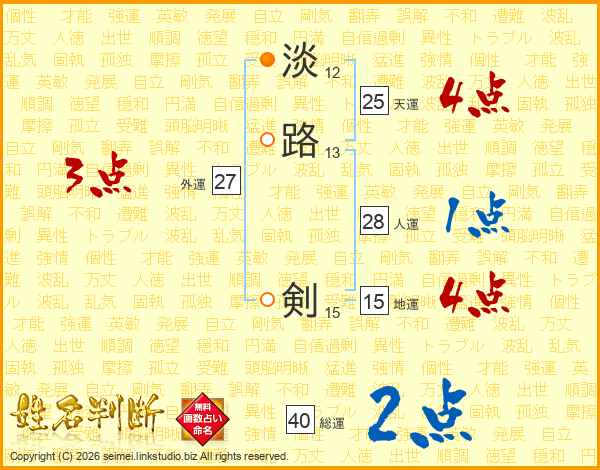 淡路剣さんの総運は40画の2点!