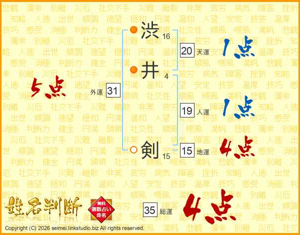 渋井剣さんの総運は35画の4点!