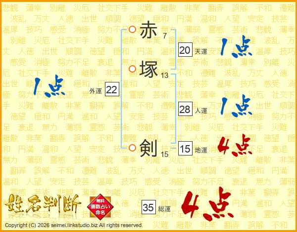 赤塚剣さんの総運は35画の4点!