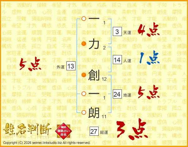 一力創一朗さんの外運は13画の5点!