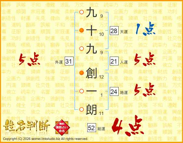 九十九創一朗さんの総運は52画の4点!