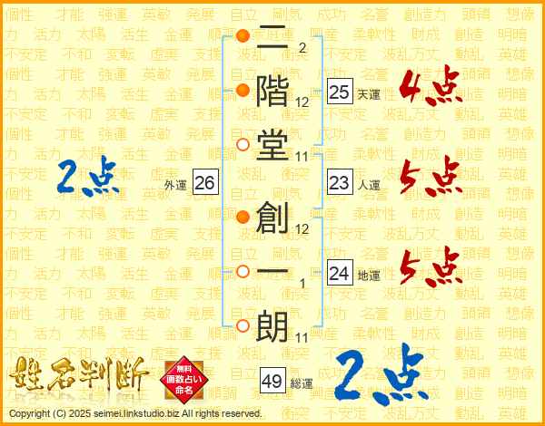 二階堂創一朗さんの総運は49画の2点!