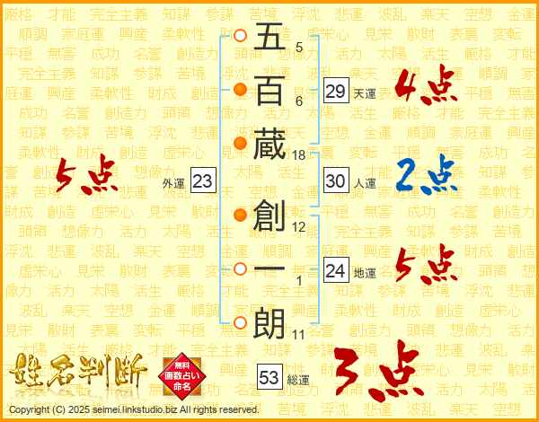 五百蔵創一朗さんの総運は53画の3点!