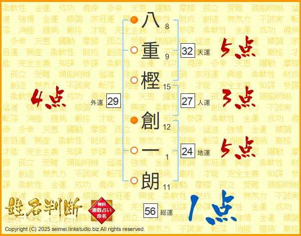 八重樫創一朗さんの総運は56画の1点!
