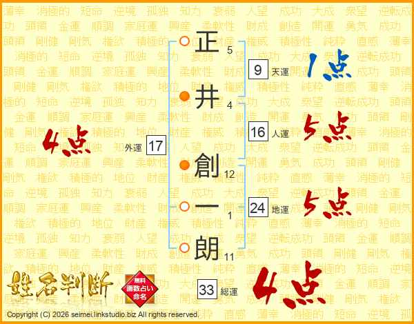 正井創一朗さんの総運は33画の4点!