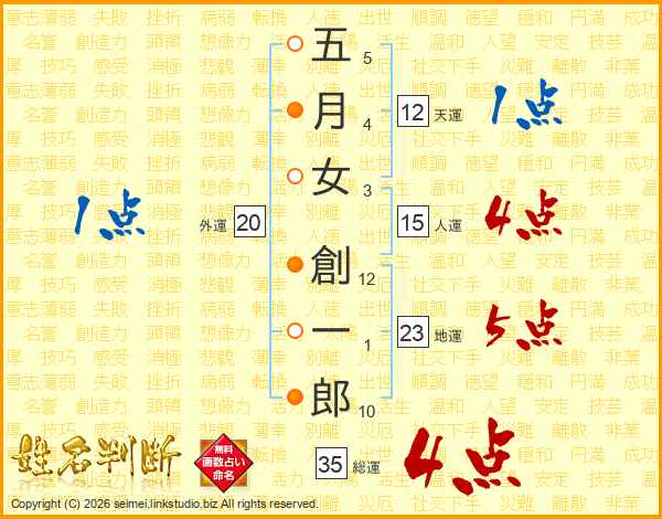 五月女創一郎さんの総運は35画の4点!