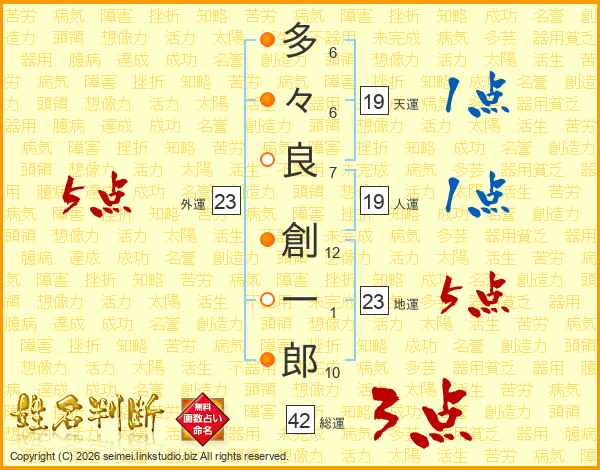 多々良創一郎さんの人運は19画の1点!