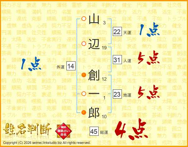 山辺創一郎さんの人運は31画の5点!