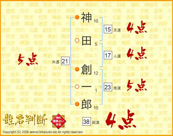 神田創一郎さんの総運は38画の4点!