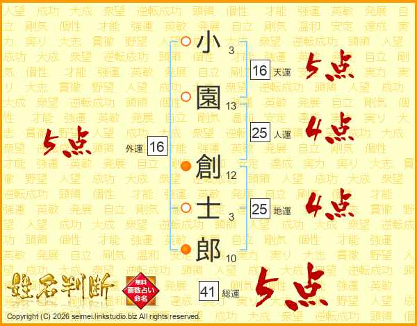 小園創士郎さんの総運は41画の5点!