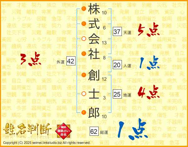 株式会社創士郎さんの総運は62画の1点!