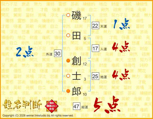 磯田創士郎さんの総運は47画の5点!