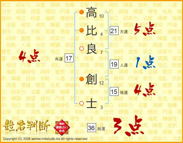 高(10画)比(4画)良(7画) 創(12画)士(3画)