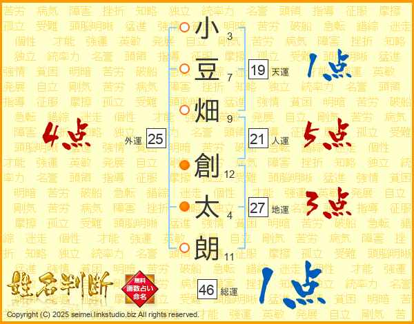 小豆畑創太朗さんの総運は46画の1点!