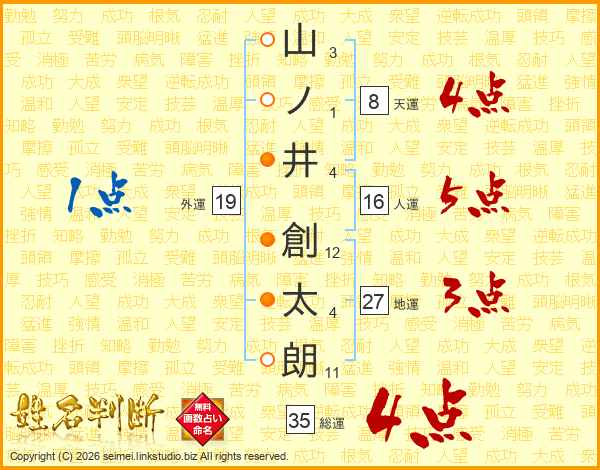 山ノ井創太朗さんの総運は35画の4点!