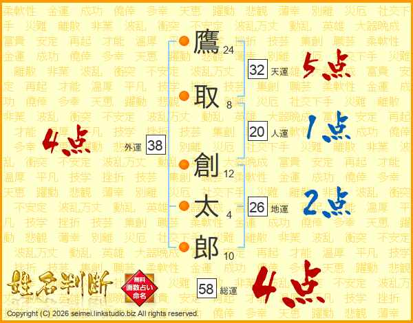 鷹取創太郎さんの総運は58画の4点!