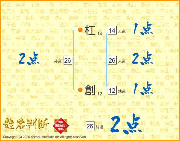 杠創さんの総運は26画の2点!